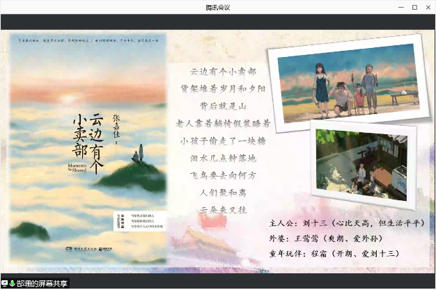 郜珊同学分享的分别是《习近平与大学生朋友们》和《云边有个小卖部》两本书。在《习近平与大学生朋友们》的分享过程中,郜珊同学通过“我们的好校长习近平同志”与“习近平鼓励我们要多尝试学科交叉研究”两篇访谈的详细讲述,完美展现了习近平同志对青年特别是大学生始终如一的关注、关心和关爱。读此书时我们能够真切感悟习近平总书记关于青年工作重要思想的深厚实践根基,郜珊同学以此为切入点,提出了广大青年大学生应做到坚定理想信念、练就过硬本领、矢志艰苦奋斗,做有志气、有才气、有骨气的新时代大学生。在《云边有个小卖部》的读书交流中,却带给了我们另一番不同的风味。这本小说是关于梦想与遗憾、关于亲情与陪伴、关于爱情、关于我们的故事。她提到,我们都不过是大千世界里最平凡的那一个,而亲人的爱也终究是一场渐行渐远的旅行,眼下的一切才是最值得我们追逐的。这本书写的不仅是小说主人公成长的故事,同时也是在写我们每一个人的故事:童年、成长、情感、受挫、云淡风轻,种种经历尽在书中每一页每一句话中,致郁却又治愈,这才是生活的本质。