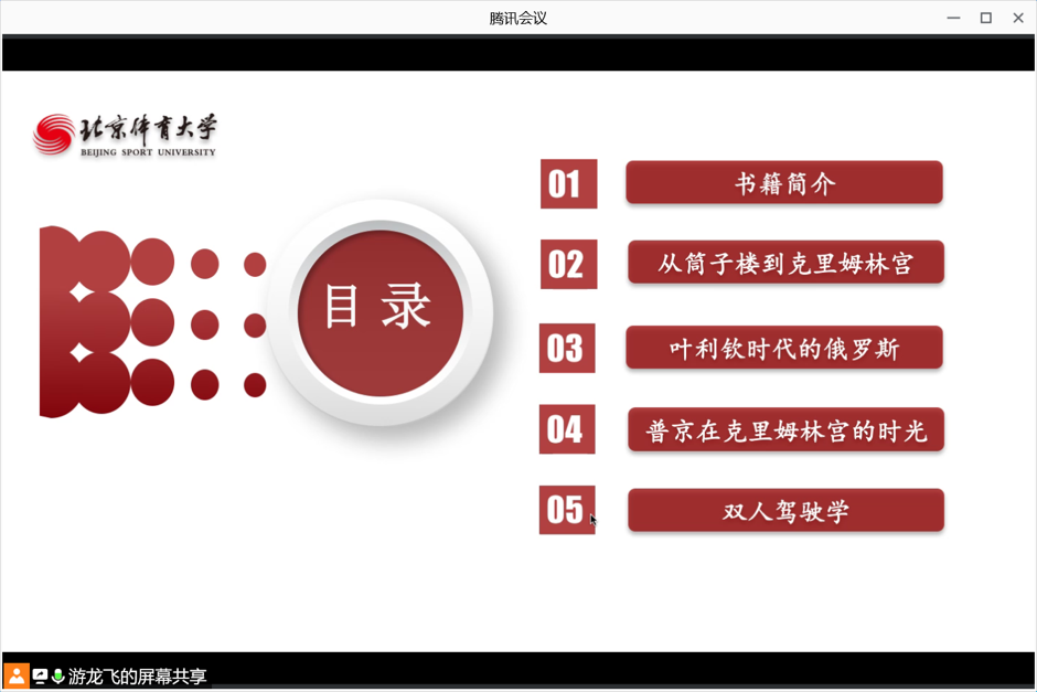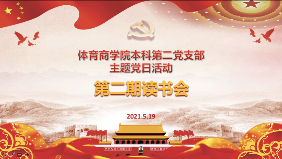 为了深入学习“四史”,牢记共产党人的初心使命,坚定理想信念,丰富同学们的课余生活与精神世界,在党支部内营造良好的阅读氛围,体育商学院本科第二党支部于5月19日上午在腾讯会议举办第二期读书会。郜珊、张可雨欣、游龙飞、张家良、刘力畅五名同学分享交流了自己近期阅读的书籍及文章。本次活动由游龙飞主持,全体支部党员参加活动。