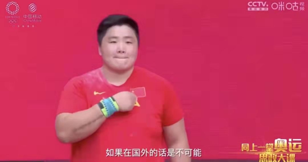 思政大课中,奥运健儿们纷纷发言。关于未来,巩立姣说:“32岁的年龄不是阻碍,只要祖国需要我,我就会一直练”。关于勇气,肖若腾说:“伤病、技术、命运、态度、这都不是事儿!”奥运健儿们为国出战,捍卫荣誉,用实际行动向世界证明了中国的实力。