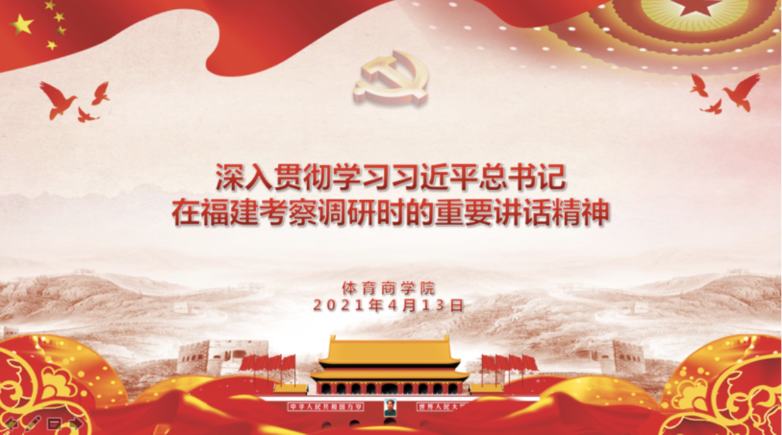 4月13日 ,体育商学院在商管楼二楼会议室召开学习交流大会,深入学习习近平总书记在福建考察期间重要讲话精神。会议由肖淑红院长主持,学院教师参加会议。