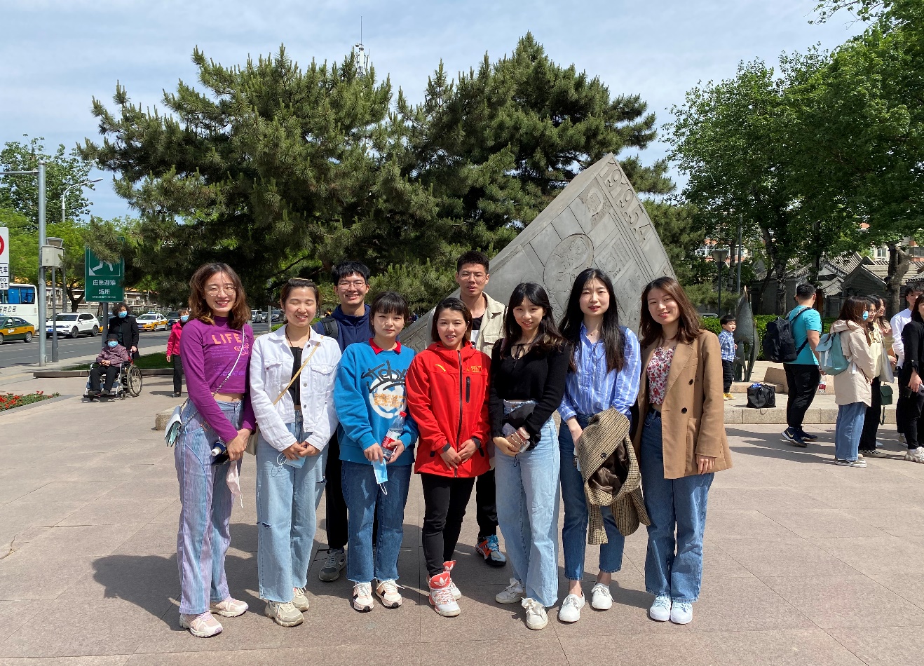 五四大街纪念碑与北大红楼隔路相望,纪念碑被设计为一张写着“1919.5.4”字样的旧报纸造型,刻有浮雕作品《翻开历史的一页》,包含“五四运动”时期新思想的代表人物陈独秀、鲁迅等。在纪念碑前,同学们重温了从辛亥革命后到五四运动期间新文化运动的兴起和马克思主义在中国的传播的历史,真切地感受到新文化运动给当时的中国带来的思想冲击与变革,感受到觉醒的青年一代对民主与科学的渴望与追求,感受到五四运动鲜明的爱国主义精神。