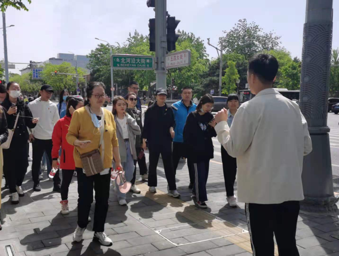 随后,大家从北京体育大学出发,重走五四运动路线,探寻五四运动策源地。途中,校五四青年奖章获得者2018级本科预备党员游龙飞同学,给大家介绍了本次活动行程路线以及注意事项。在有纪念意义的地标前,2018级本科预备党员钱渝昊为师生们进行了详细地讲解。