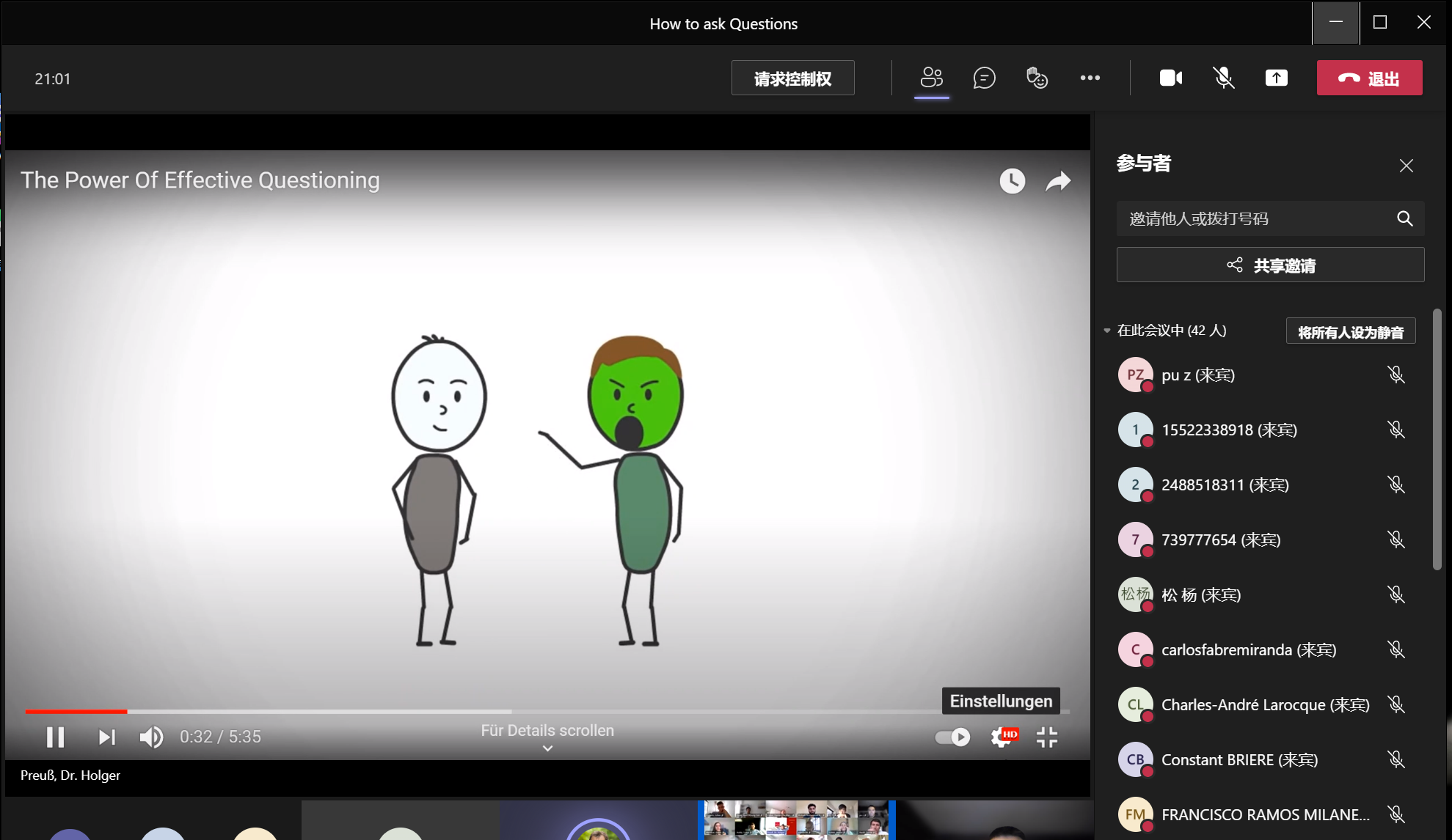 2020年德国美因茨大学与我院开展了《国际体育商务管理》在线课程培训,取得了良好的效果。为进一步推进我院国际化建设,加强师生对国际体育产业的了解和认识,培养国际视野、提升专业能力,继去年第一次进行线上培训后,学院通过与德方沟通协调,为学院师生继续创造了线上学习交流机会。项目得到了全院师生的广泛关注,11名硕博研究生通过报名与筛选参与到了课程当中。本次培训于2021年8月16日晚19:15正式开课,为期2周,利用Microsoft Teams平台,以全英文授课的方式开展。除我院外,德国美因茨大学、加拿大渥太华大学、巴西南里奥格兰德联邦大学共4所院校42名师生参与本次培训项目。