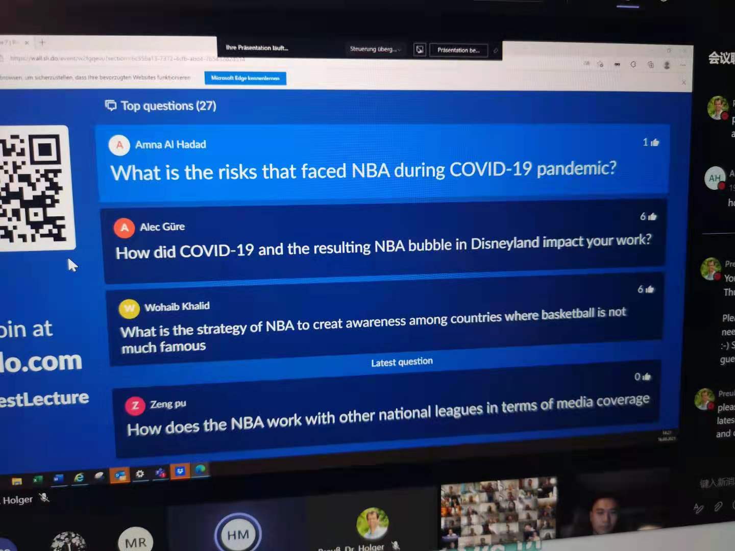 课程伊始,德国美因茨大学豪格教授(Holger)首先欢迎了来参加培训的各国师生,并对本次培训进行了简要概述。之后对第一天课程的主讲教授进行了介绍,并顺利开展了第一天的讲座。客座教授赫克托·阿格尔斯(Hector Arguelles)以 “Digitalization of the NBA“为题目开始了第一个讲座。Hector教授作为NBA数字媒体的副总裁,将NBA联盟如何将比赛传播到世界各地的过程进行了讲解,并讲解了NBA与世界各地媒体合作的模式。在回答提问环节,四所学校的师生提出了30多个引人深思的问题,Hector教授进行了解答与讨论。讲座结束后,Holger教授对刚才大家的提问进行了点评,并以“How to ask scientific questions“为题展开授课。
