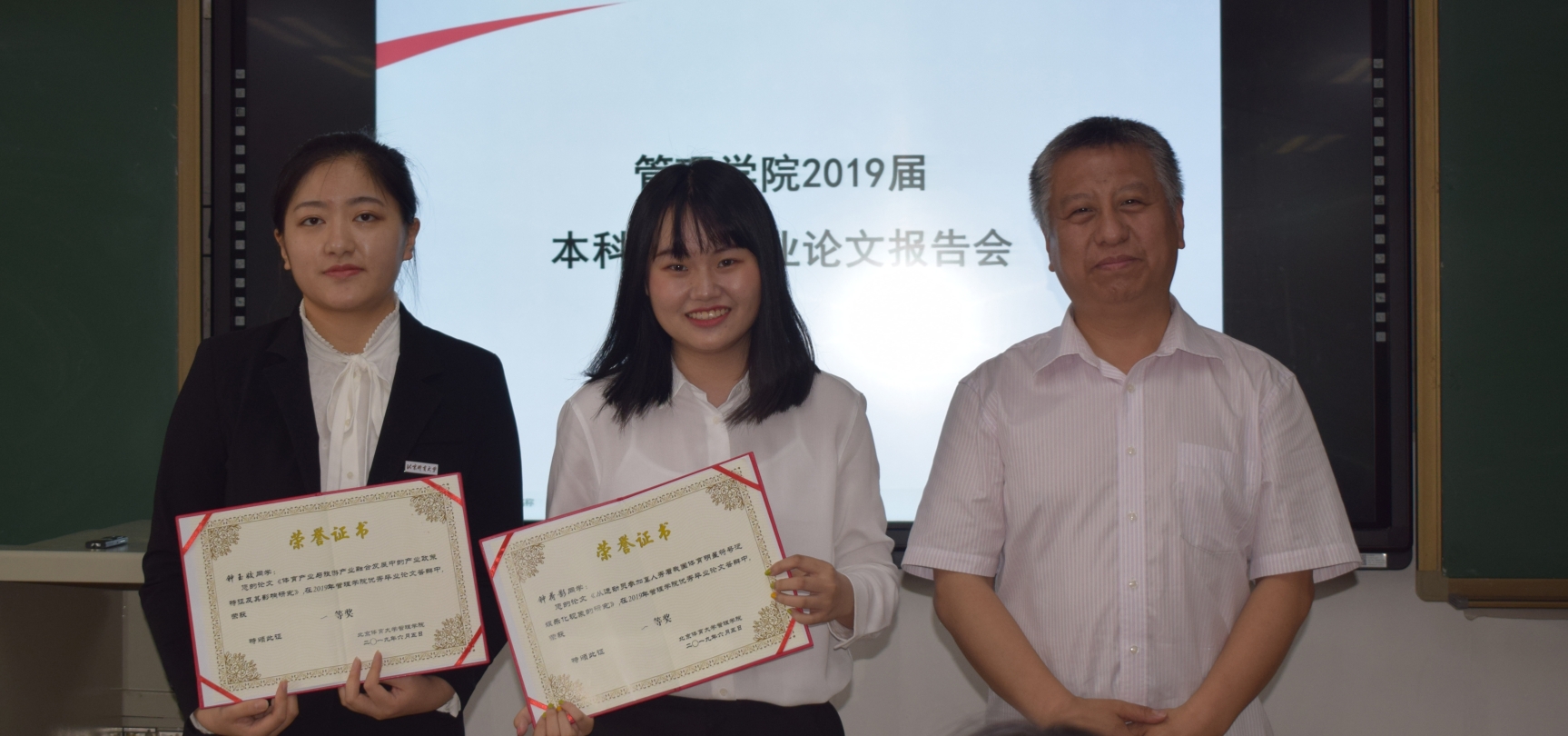 2019年6月5日10:00,管理学院2019届本科优秀论文报告会在教学楼415教室举行。担任本次优秀论文报告会的评审专家是王芳、李屹松、郎玥三位老师。报告会由教务员杨颖老师主持。管理学院分党委书记张亚宁老师、副院长李圣鑫老师、办公室主任高春燕老师出席报告会。