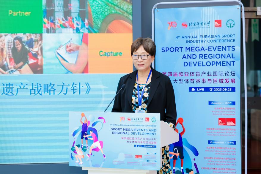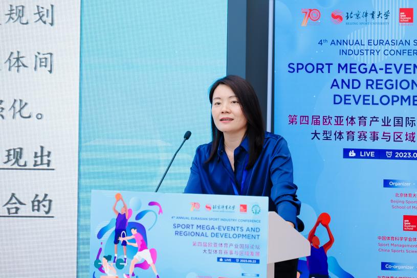 法国里昂商学院副校长、亚洲校区校长、亚欧商学院法方院长王华代表联合主办方致辞。他表示,回顾过去三年,我国举办的大型体育赛事表现出了强大的韧性和对经济发展的推动作用。2022年北京冬奥会带动了三亿人开展冰雪活动、2023年成都大运会大力推动了当地旅游的发展,相信2023年杭州亚运会的召开将掀起更为广泛的全民健身运动热潮。欢迎各位体育界和产业的专家们齐聚一堂,从多角度探讨大型体育赛事如何提升城市形象与可持续发展问题。2024年是巴黎在时隔百年之后,再次举办奥运会,并将在塞纳河上开启盛典。他也借此机会邀请中外学者参加明年在法国举办的第五届欧亚体育产业国际论坛。