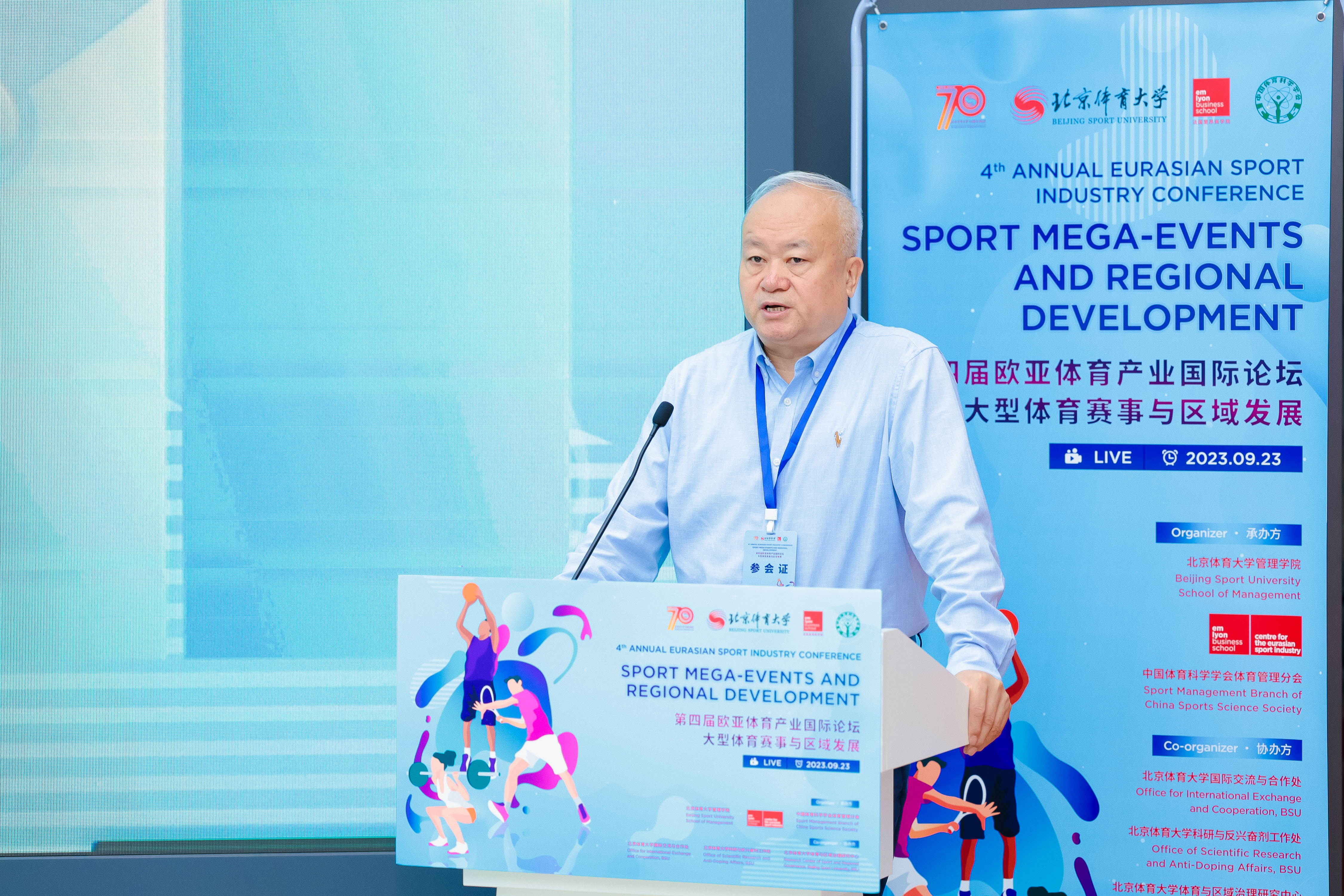 中国体育科学学会副理事长兼秘书长、国家体育总局体育科学研究所党委书记、所长曹景伟教授通过视频致辞表示,今年是全面贯彻党的二十大精神的开局之年,也是全面实施十四五规划、承上启下的关键之年,需要充分发挥体育在全面建设社会主义现代化国家中的重要作用,在推进中国现代化进程中建设体育强国。大型体育赛事已成为区域发展转型升级的重要动力,本次论坛以“大型体育赛事与区域发展”为主题,恰逢其时、正当其势。希望欧亚体育产业国际论坛继续紧跟时代步伐、传承创新,汇聚顶尖智慧,引领学术思潮,共话管理前沿,共谋国际合作,照亮中国体育产业的前行道路。