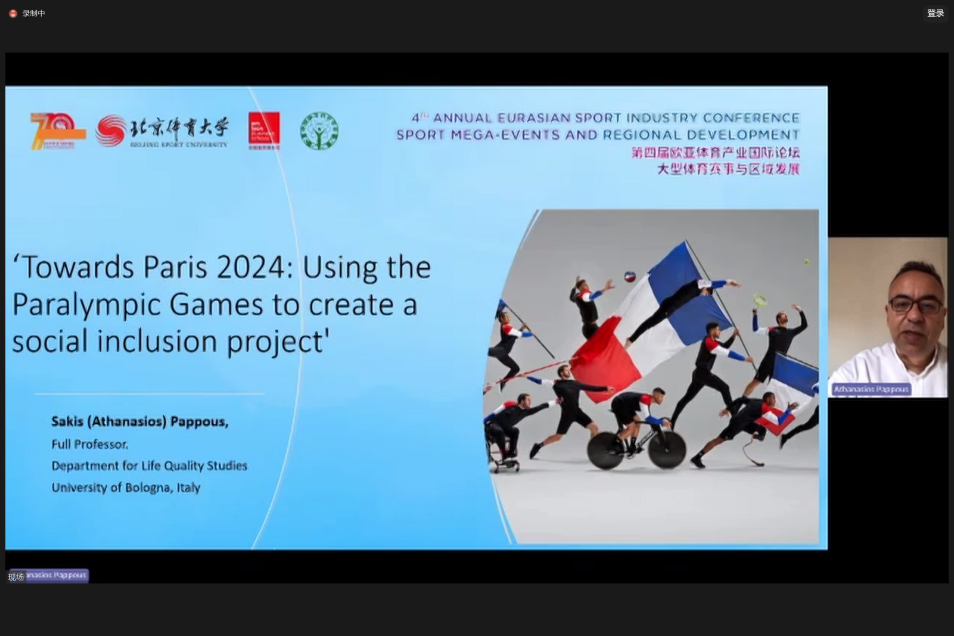 意大利博洛尼亚大学阿塔纳西奥斯·帕普斯(Athanasios Pappous)教授以《巴黎2024年奥运会:利用残奥会实现社会融合的案例》为主题进行了视频分享,他畅谈了国际上关于残奥会运动员报道方面的研究成果,强调残疾人运动员们希望媒体能够更多地展示其积极的运动状态、展现运动之美。