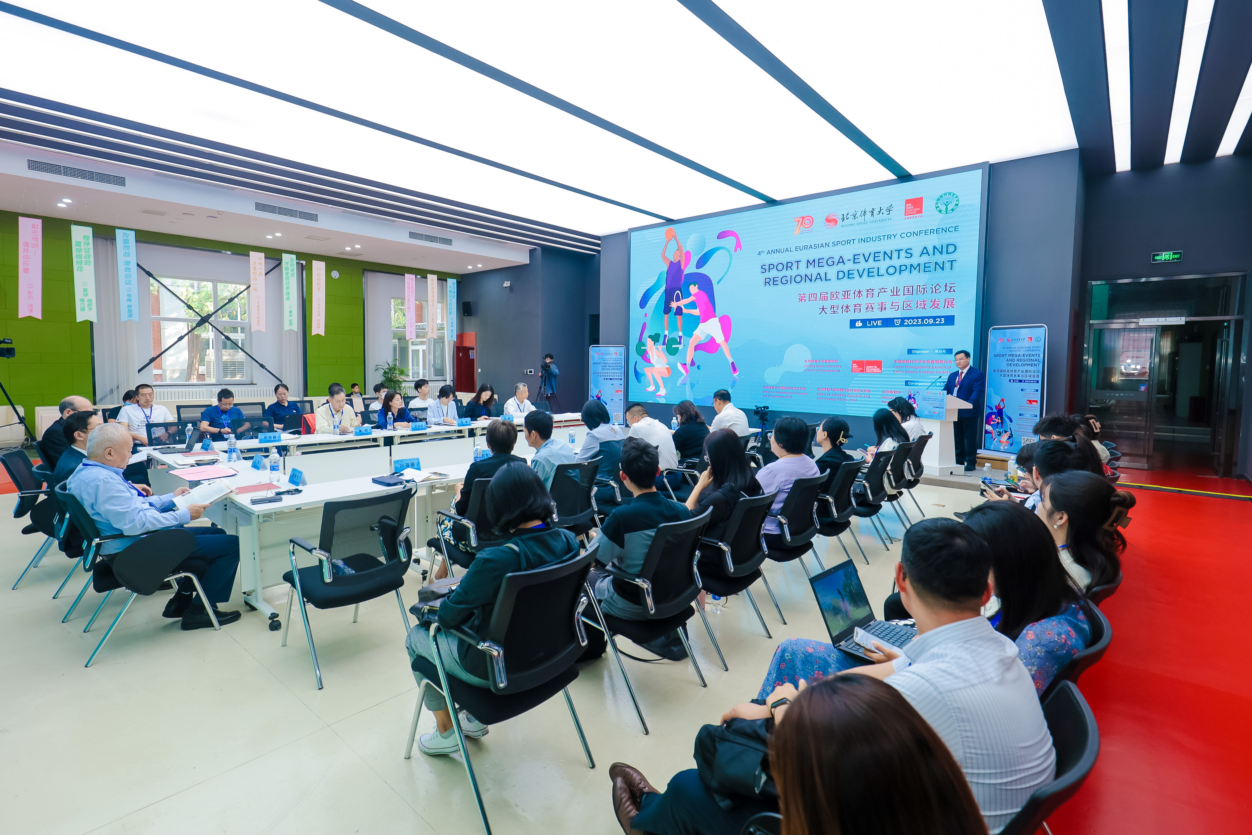 9月23日,为隆重庆祝北京体育大学建校70周年,北京体育大学和法国里昂商学院、中国体育科学学会联合主办的第四届欧亚体育产业国际论坛在北体传媒演播大厅举行。