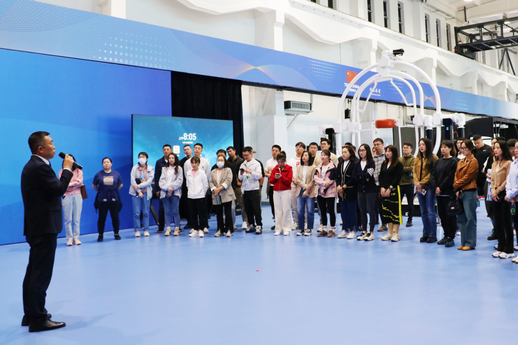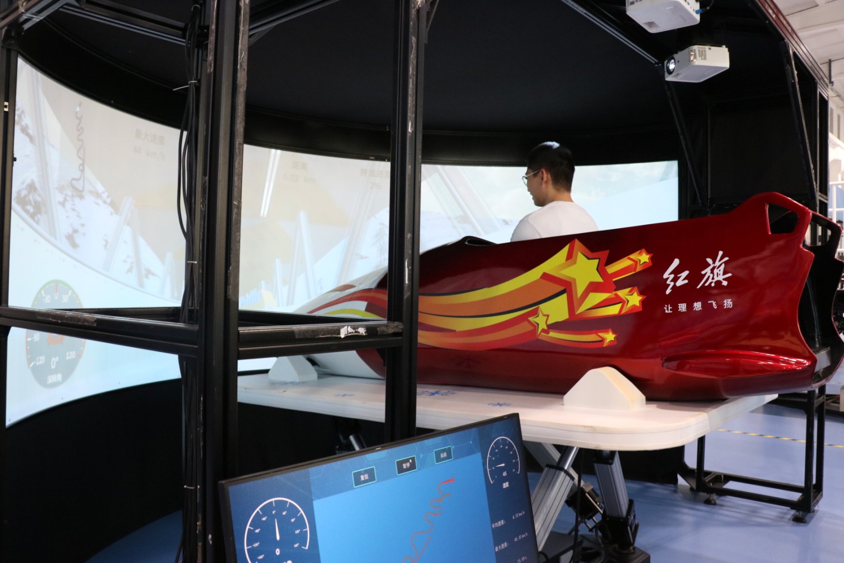 同学们跟随二七国家冰雪科研训练基地总经理赵焕刚沿着习近平总书记到本训练基地考察调研时的路线进行参观见学。这是一个集科研、训练于一体的国家冰雪运动复合型基地,场馆和设施设备在冬奥备战期间供国家队使用。同学们先后走进六自由度训练馆、综合风洞馆,观看了国产4人雪车、国产雪蜡车、应急医疗救治设备等器材装备展示,深入了解基地建设历程、冰雪运动科学训练体系和冰雪产业的科研成果。这对热爱体育产业的新时代MBA学子来说又是行业探索过程中的重要收获。
