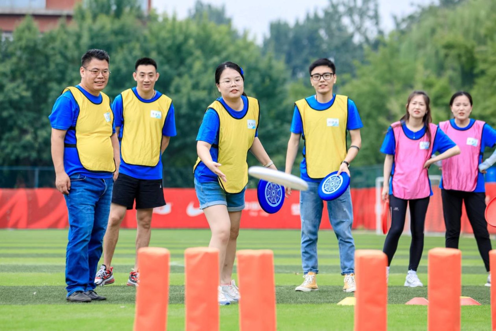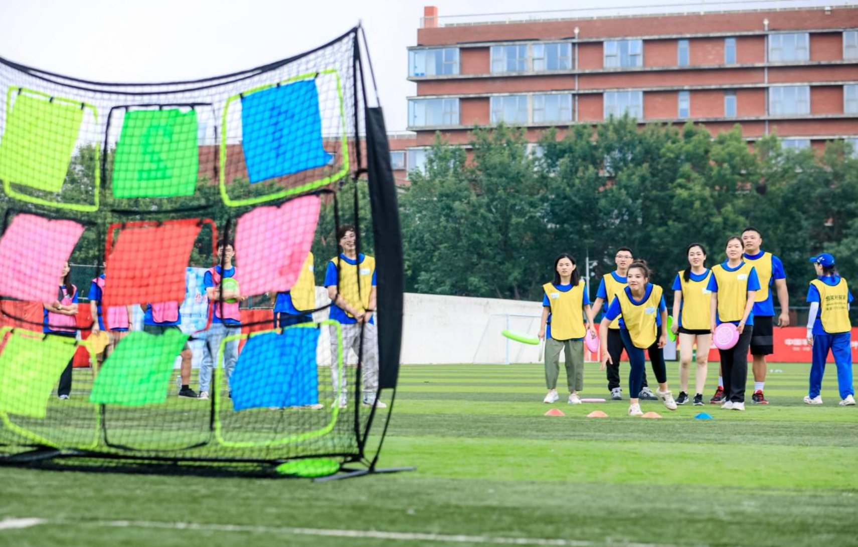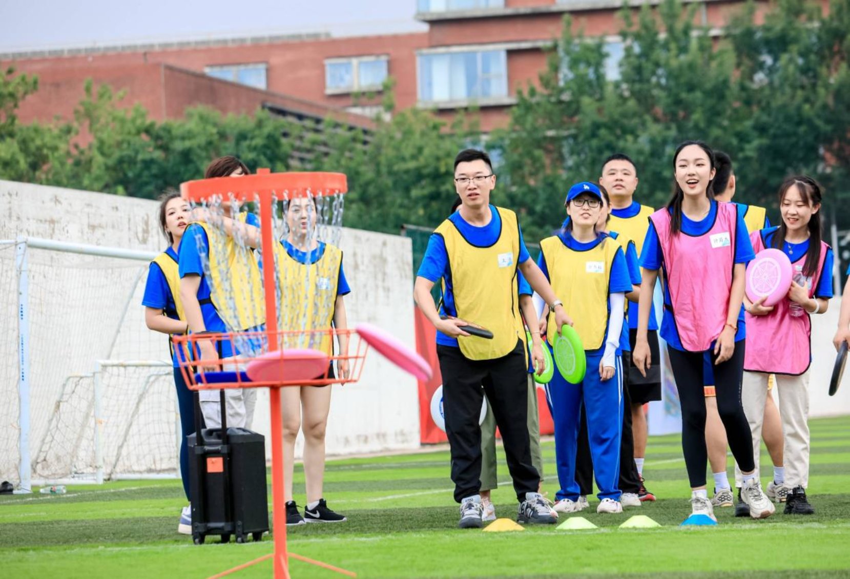 飞盘热身赛结束后,新生们进入到了充满活力气息的飞盘嘉年华活动,此活动分为四个项目:飞盘高尔夫、飞盘目标框、飞盘保龄球和飞盘九宫格等多个项目。伴随着竞争、互助、合作,各小组内和小组间,逐步加深了对彼此的了解和信任、默契度越来越高,同学们也在各环节中展示了自我特长和风采。