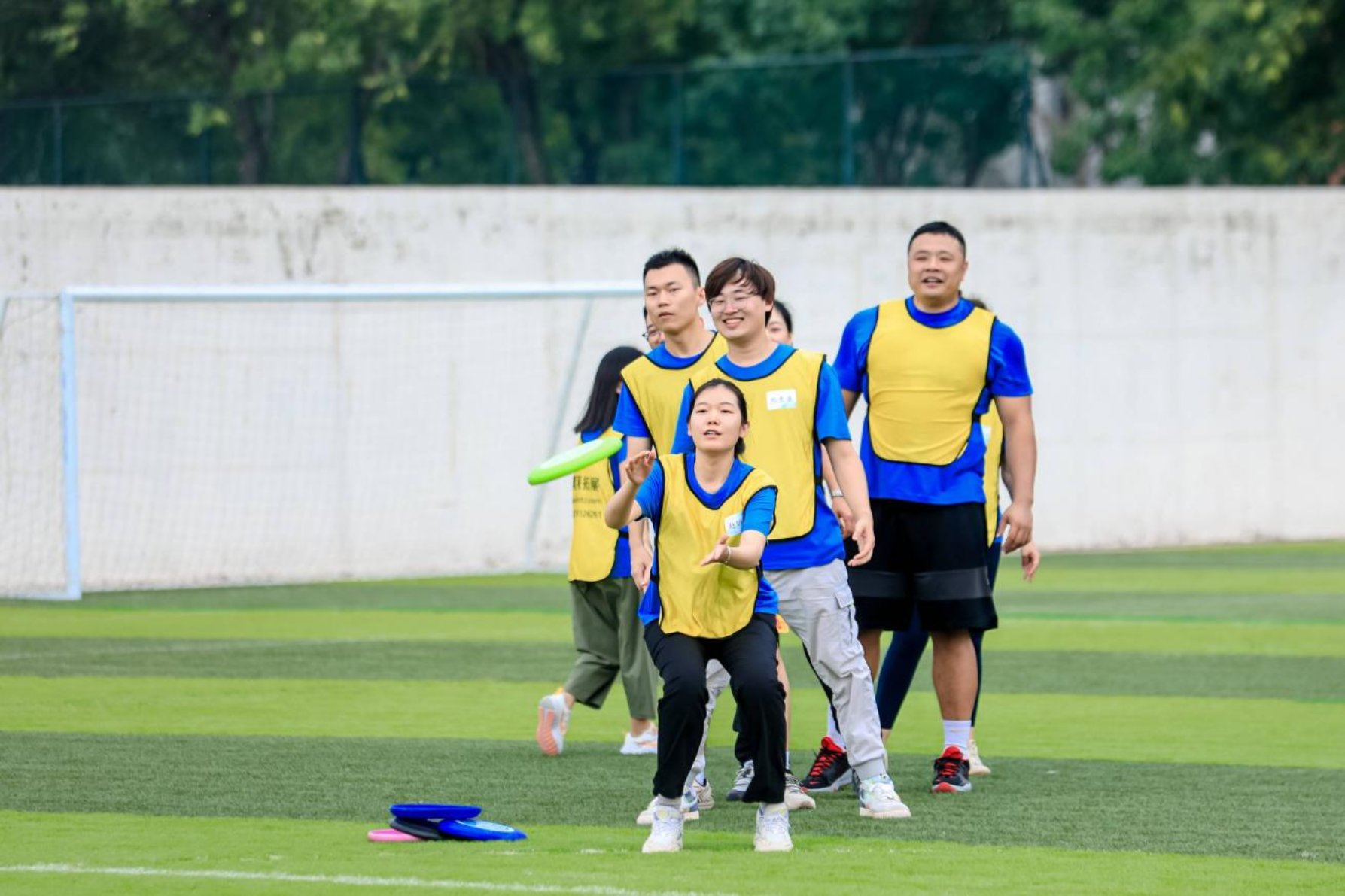 随后,各小组在教练的带领下开始了飞盘热身赛——仓鼠过冬。同学们经过短暂的适应和热身,讨论好战术并且布置好分工后,一个个“运动员”全力以赴,同学们之间的友谊在欢乐的氛围中持续升温。