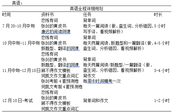 1、英语:一定做真题3次以上,保证阅读无生词,推荐唐池老师讲解;