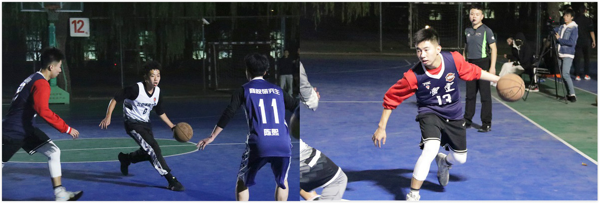 比赛伊始,研究生男篮13号张岩松夺得球权,率先发起攻势,他突破至低位,抛投命中,为研究生男篮博得头筹。而18男篮也不甘示弱,18男篮15号张苏桐接06号刘学寰传球后,果断出手,跳投得分,予以回应。18男篮势头猛进,持续获得球权,15号张苏桐接88号陈想胯下传球,远投一记漂亮3分。紧接着研究生男篮不甘雌伏,13号张岩松接队友11号陈熙传球,远投命中,连获两记三分,将比分扩至12:6。随后,18男篮88号陈想,连续跳投命中,连得四分。随后球权易手,13号张岩松手持篮球,三分命中后,连续反击进球。研究生男篮以17:12略微领先结束本场第一节比赛。第二节比赛开始,势气不减,研究生男篮39号曾朴手持球权,一记漂亮勾手反攻,帮助球队进一步扩大比分。接着,18男篮队长00号张迎祥底线三分球投出,篮球在空中划出漂亮的弧线,全场沸腾。随后18男篮16号张家良突破数人防守,上篮打成“2+1”。而研究生男篮39号曾朴在防守端送出一记火锅,架起了球队的禁飞区。距离上半场比赛仅剩30秒时,18男篮00号张迎祥接球后向前场狂奔,到了右侧三分线处,他急停跳投,命中压哨三分。18男篮以25:23反超对方两分,精彩地结束了上半场的激烈比赛。
