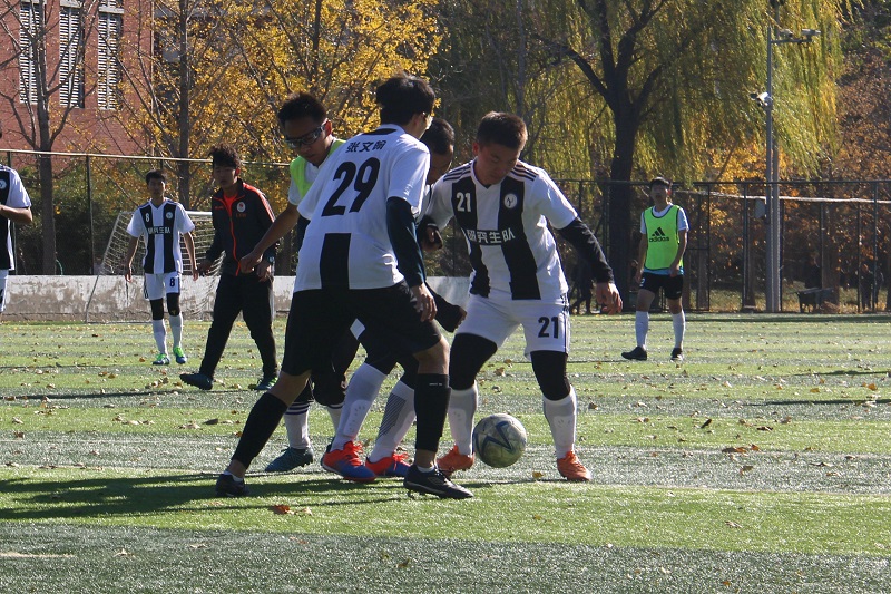 北京时间11月16日星期五中午12:15,管理学院第三十一届“冠军杯”足球赛第八场男足比赛在2号场地落下帷幕。研究生男足和15级男足都积极拼抢,用尽全力,为球迷们呈现了一场精彩的比赛。比赛以3:2告终,15男足迎来了“冠军杯”的首场胜利,而研究生虽败犹荣,用出色的表现为本届“冠军杯”画上了一个完满的句号。