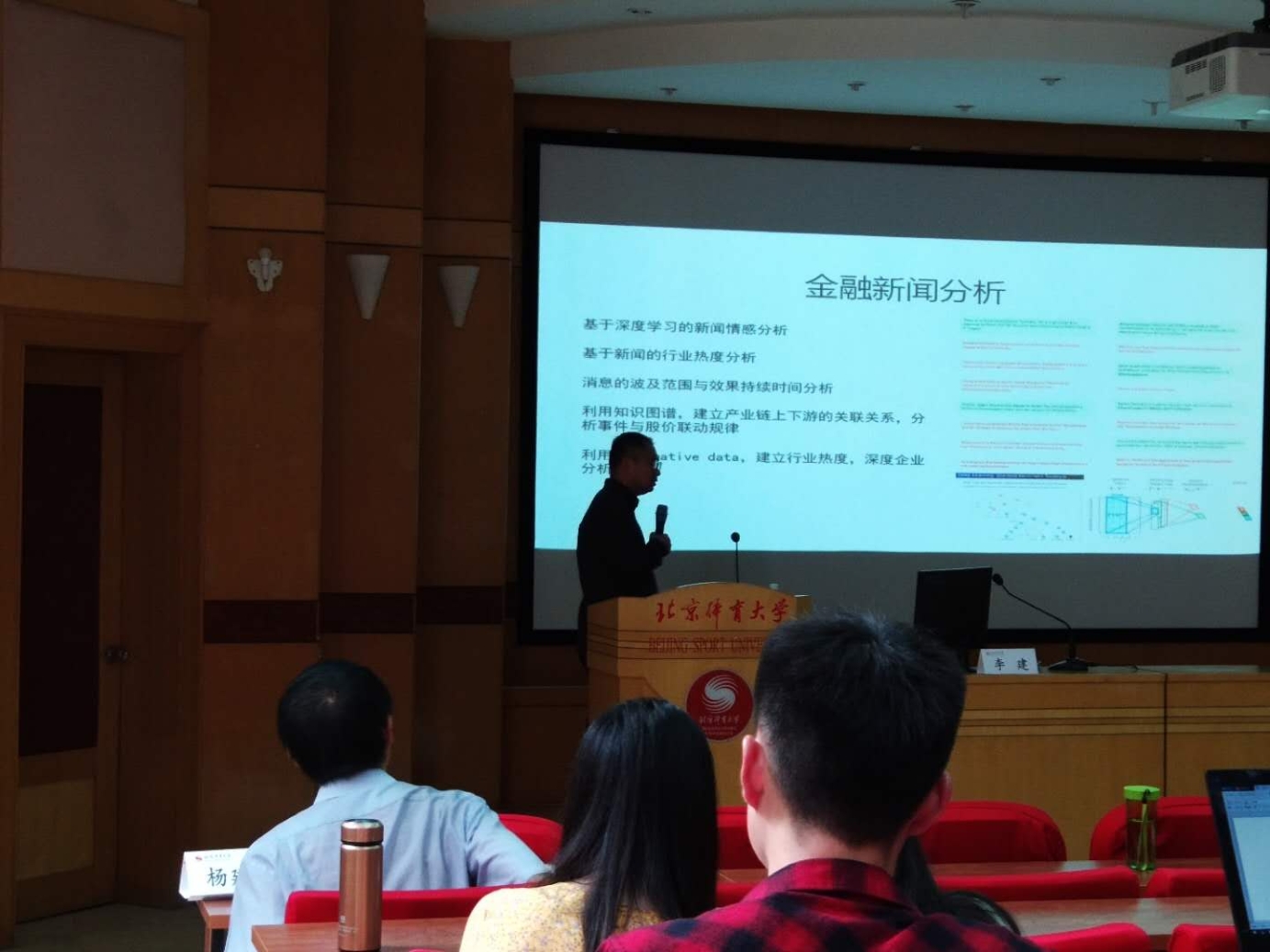 然后,讲解了人工智能选股,它是基于深度学习进行预测的人工智能选股,每日推荐大概率上涨的若干只股票,利用时空大数据深度学习技术的框架;金融新闻分析,基于深度学习的新闻情感分析,基于新闻的行业热度分析,消息的波及范围及效果持续时间分析,利用知识图谱,建立产业链上下游的关联关系,分析事件与股价联动规律,利用alternative data,建立行业热度,深度企业分析。
