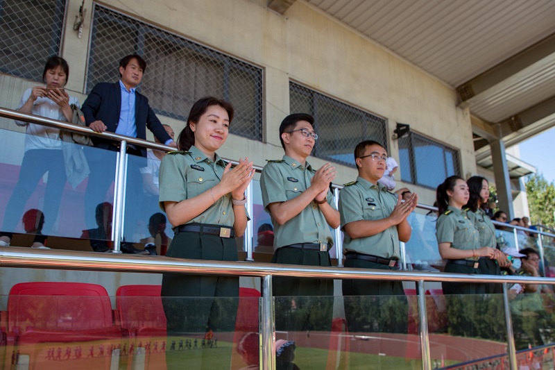 北京时间2018年9月8日上午九点,北京体育大学2018级学生军训结营仪式在英东田径场正式开始,管理学院副院长兼分党委副书记王莉老师,管理学院团总支书记兼任2016级、2018级辅导员李秉新老师,管理学院研究生辅导员、教务员雷静老师,管理学院研究生助管韩阳老师出席了本次结营仪式。早上九点的太阳已经十分毒辣。同学们经历了为期15天的军训以后,塑造起了顽强的品格,尽管头顶烈阳,也没有丝毫的懈怠。