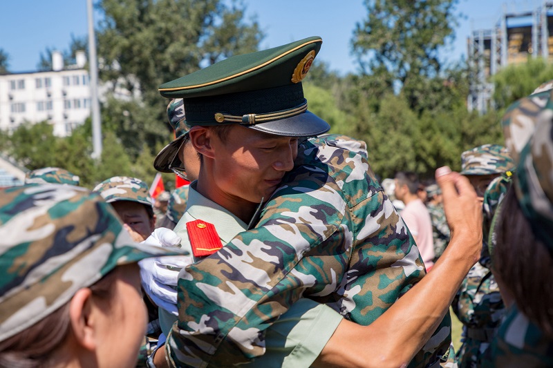 所有的相聚都终有一别,随着结营仪式正式结束的号令发出,军训也落下了帷幕。而陪着大家成长的教官也向大家挥了告别的手。此时,除了眼泪,也没有什么能将同学们心中的情谊表达得更清楚了。这份眼泪是对教官教会他们成长的感激,也是对一个朋友的不舍。