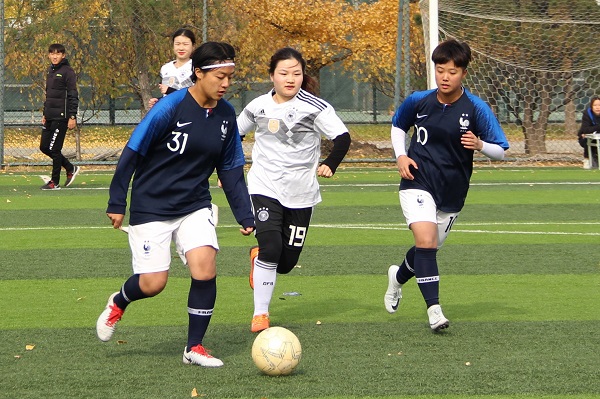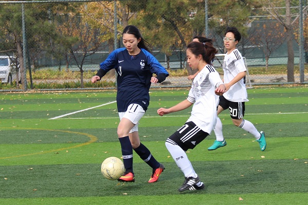 北京时间2018年11月5日星期一中午12:20,体育商学院“精英杯”足球联赛第四场比赛在足球场3号场准时揭幕,对阵双方为2018级女子足球代表队(下文简称18女足)和2016级女子足球代表队(下文简称16女足)。体育商学院团总支书记兼2015级辅导员蒋岩岩老师也莅临现场观赛。双方队伍势不可挡,胶着对抗,最终,经过30分钟的激战,双方以1:1的比分握手言和。