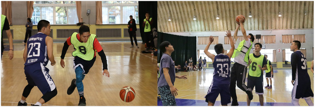 北京时间2019年11月 12日中午12:20,体育商学院“精英杯”篮球联赛在大鹏篮球馆2号场正式打响。对阵双方分别为研究生男子篮球代表队(以下简称“研究生男篮”)和经济学男子篮球代表队(以下简称“经济学男篮”)。双方经过四节激烈的攻防较量,最终,研究生男篮依靠更为丰富的经验和优秀的团队配合,以62:44的比分击败经济学男篮。