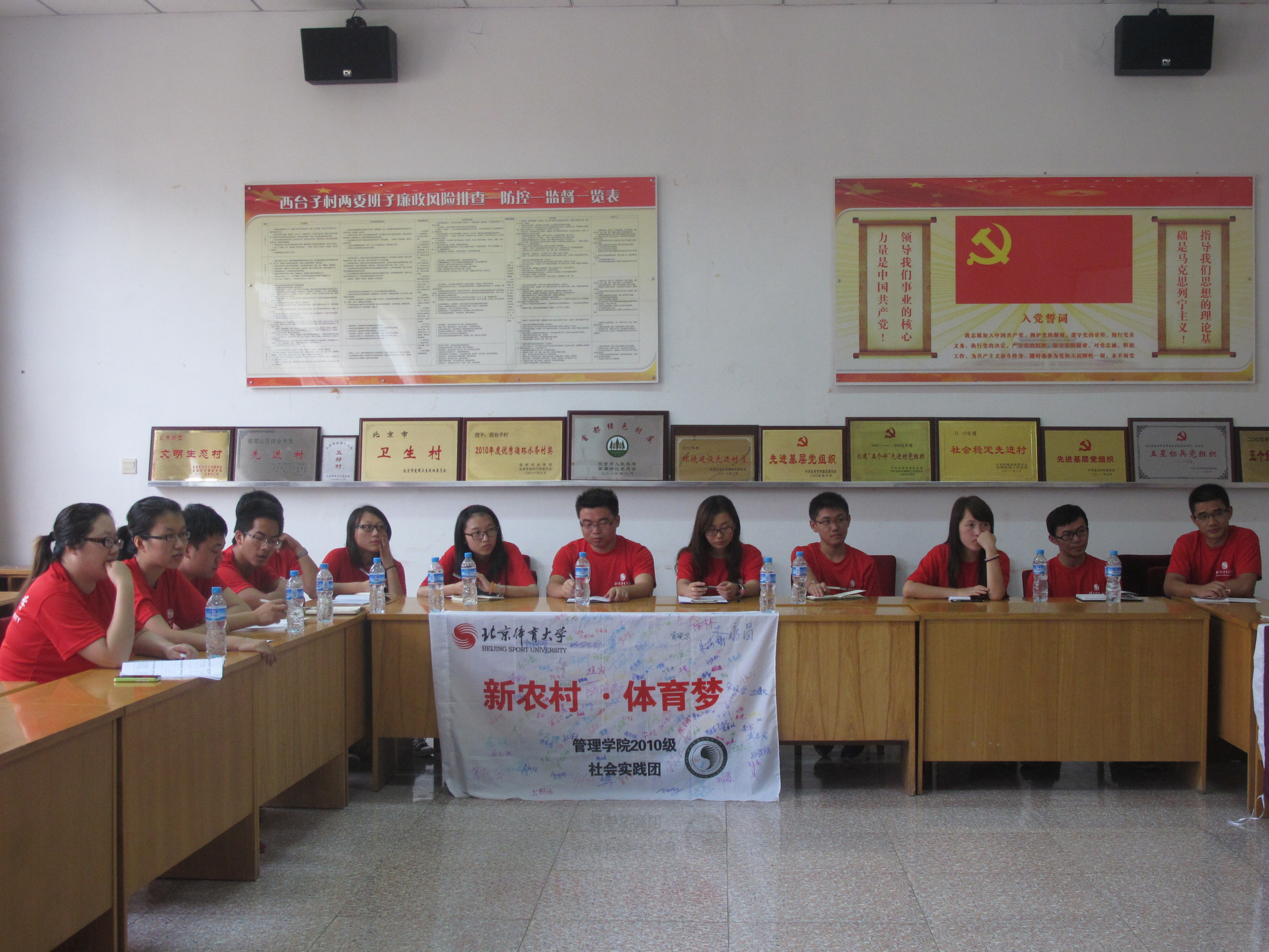2013年8月10日,管理学院2010级积极响应学校的号召,在辅导员蒋岩岩老师的带领下,组成了共14人的暑期社会实践团赴怀柔区琉璃庙镇西台子村进行新农村体育状况的实践调研活动。此次活动旨在传播体育文化,宣传北体精神,促进当地体育发展。
