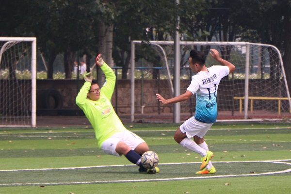 最后一场比赛为2017级代表队与2018级代表队的对决。第2分钟,17级代表队在左路获得机会,07号许杰为在禁区前沿利用个人能力晃开一名防守队员创造出射门空间后,大力起脚抽射,皮球呈弧线直挂死角,17级代表队率先取得进球,场上比分1:0。第4分钟,17级代表队在禁区内犯规,送给对手点球机会,由18级代表队09号马梦麒主罚,一蹴而就。将比分扳为1:1平。第12分钟,18级代表队右路传中,获得射门机会,无奈被门将收下。第14分钟,18级代表队07号许哲豪在禁区右侧连续带球突破,闪出角度后,在禁区前沿一脚推射,但可惜皮球稍稍高出横梁,并未转化为得分。随后,主裁判吹响全场结束哨音,双方战为1:1平。