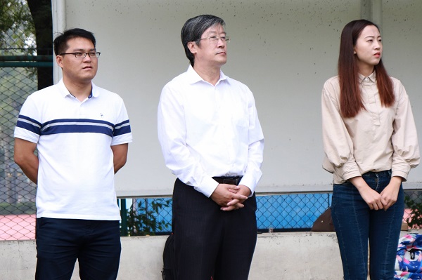 首先进行的是迎新赛开幕式,到场的老师有:体育商学院负责人林显鹏教授、研究生辅导员孟超老师、2017级辅导员田奥老师。主持人黄子轩在致开场白后,向大家介绍了到场嘉宾及比赛赛制。紧接着,林显鹏教授为迎新赛致辞,肯定了迎新赛的重要意义,希望通过迎新赛激发商院人参与体育锻炼的积极性。开幕式在到场人员的大合影中画上句号,同时也标志着迎新足球赛的正式开始。