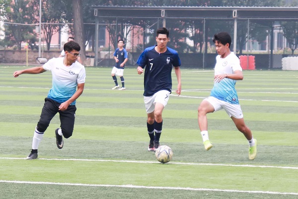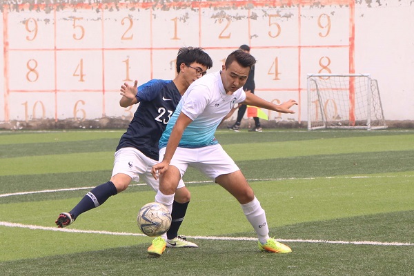 揭幕战的对阵双方分别为体育商学院代表队及2018级代表队。刚刚开场,18级代表队的新同学们就展示了他们不俗的实力。第3分钟,18级代表队中路渗透,直塞将皮球打到门前,混战中,18级代表队07号许哲豪将球捅入球门,为18级代表队获得了开场的第一粒进球,场上比分为1:0。第7分钟,院队从右路发起进攻,将球传中,18级代表队门将反应机敏,连续做出两次关键性扑救,将球挡在门外。接下来院队获得三次角球机会,但都未转化成为得分。第9分钟,院队11号西尔阿吉边路突破,将球塞到中间,16号阮文东面对空门冷静推射,将球打入。场上比分被改写为1:1。第12分钟,院队在禁区前沿获得任意球机会,11号西尔阿吉主罚,皮球直接挂向死角,但18级代表队门将发挥出色,将球扑出。接着院队获得角球机会,由16号阮文东主罚,皮球小角度射入,将比分改写为2:1,院队领先。第14分钟,院队11号西尔阿吉获得单刀机会,凭借个人能力从中场带球突破,射门,但最终还是被门将扑出,未能再夺一球。随着主裁判一声哨响,比赛结束,双方战为2:1,体育商学院代表队获得胜利。