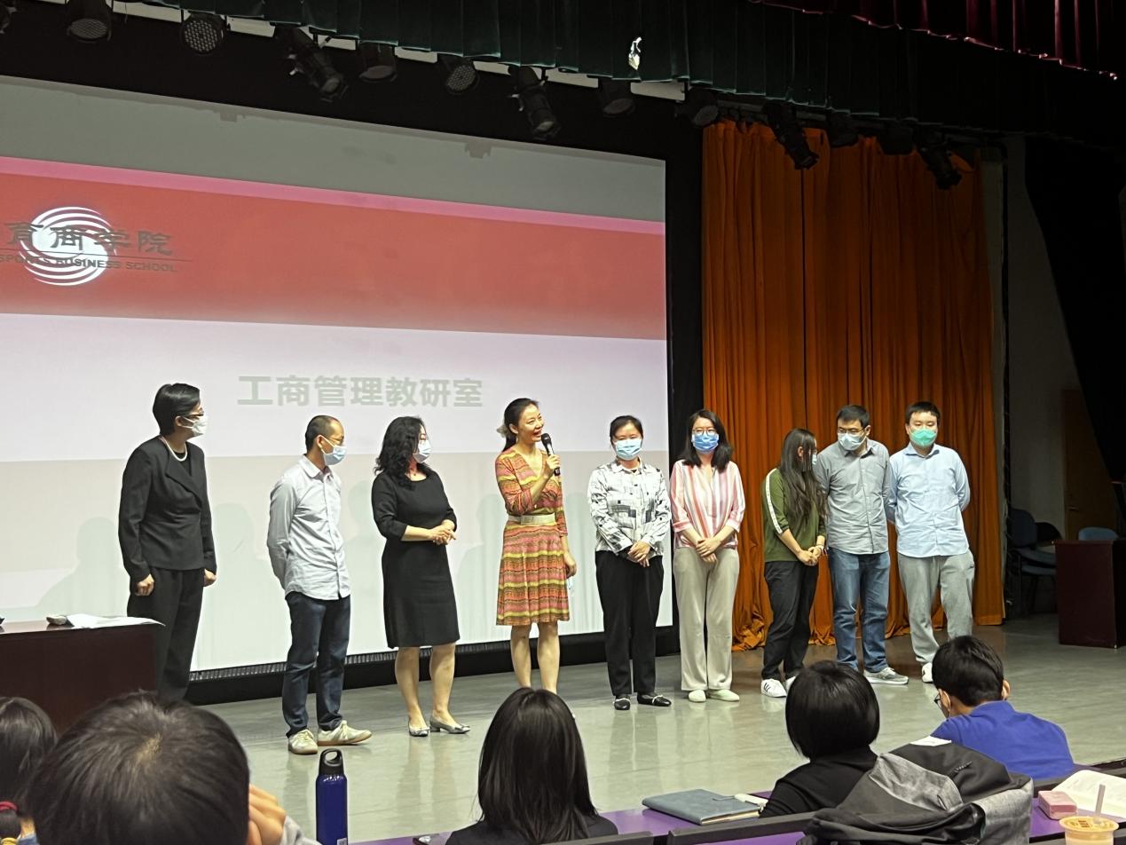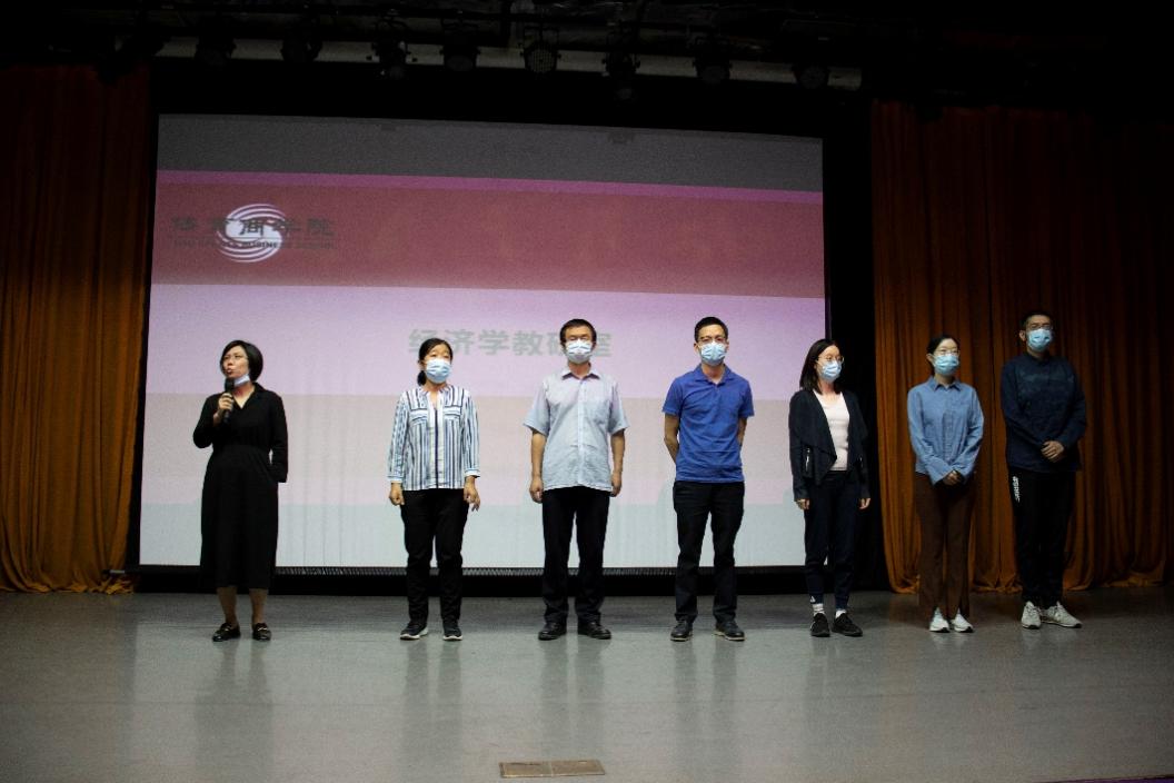 随后,学院办公室、工商管理教研室、经济学教研室的二十余位老师先后上台进行介绍。老师们不仅介绍了自己的研究方向及教授课程,还纷纷寄语同学们要树立良好的学习和生活态度,传承体育基因,勤学善思,多问笃行。或语重心长、或幽默风趣的介绍引来一阵阵掌声,令同学们对学院的归属感愈甚、对未来的期待也愈深。
