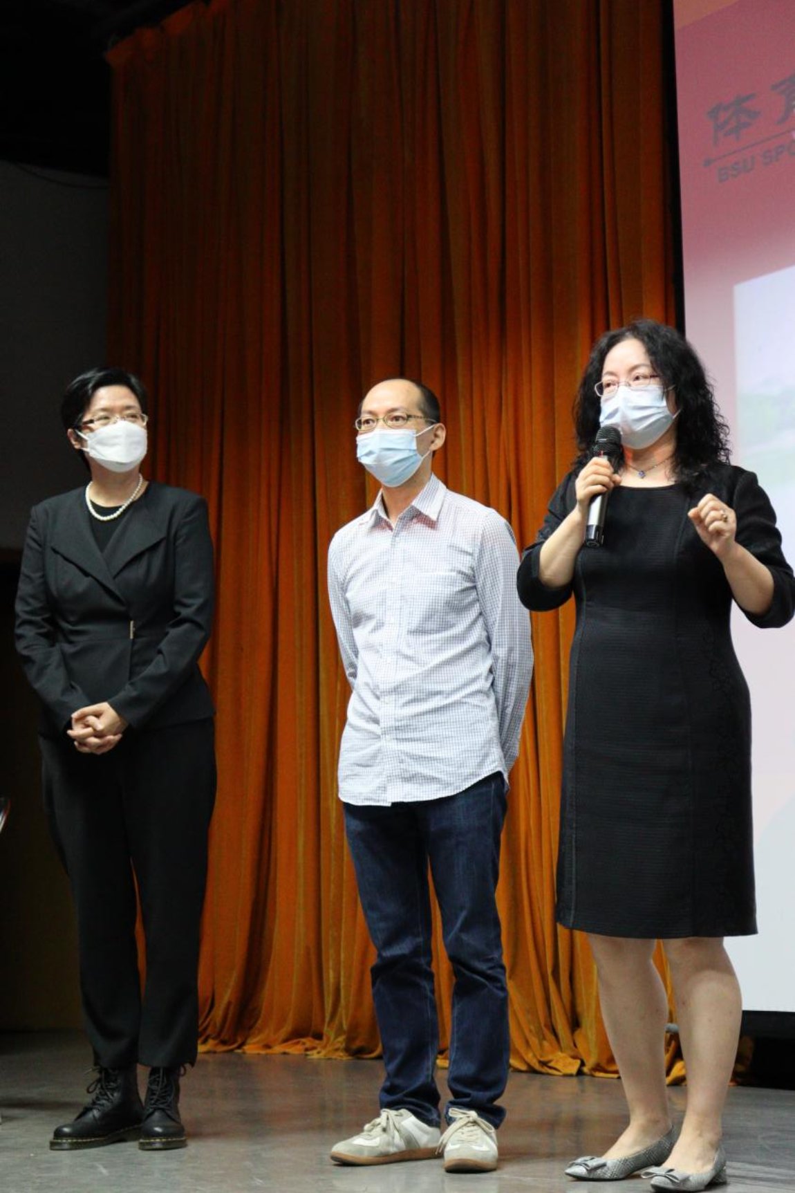 莅临本次见面会的主要领导老师有:体育商学院党总支副书记、院长肖淑红,体育商学院党总支副书记戴旭,体育商学院院长助理吴特,体育商学院工商管理教研室主任谌莉,体育商学院经济学教研室主任李艳丽,以及体育商学院全体教师。会议由2022级新生辅导员李迎港老师主持,2022级体育商学院全体新生参加会议。
