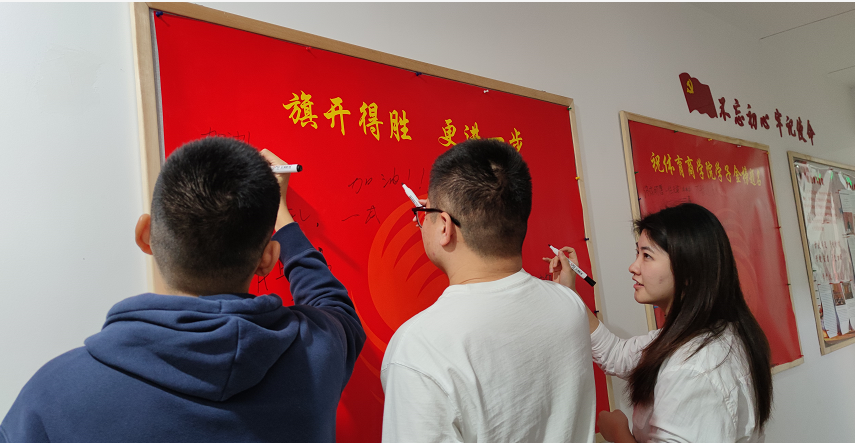 学院办公室宣传栏近日也开辟了加油专区,张贴红榜邀请考生们和其他年级学生、学院教师为同学们书写自己的祝福,表达美好心愿。