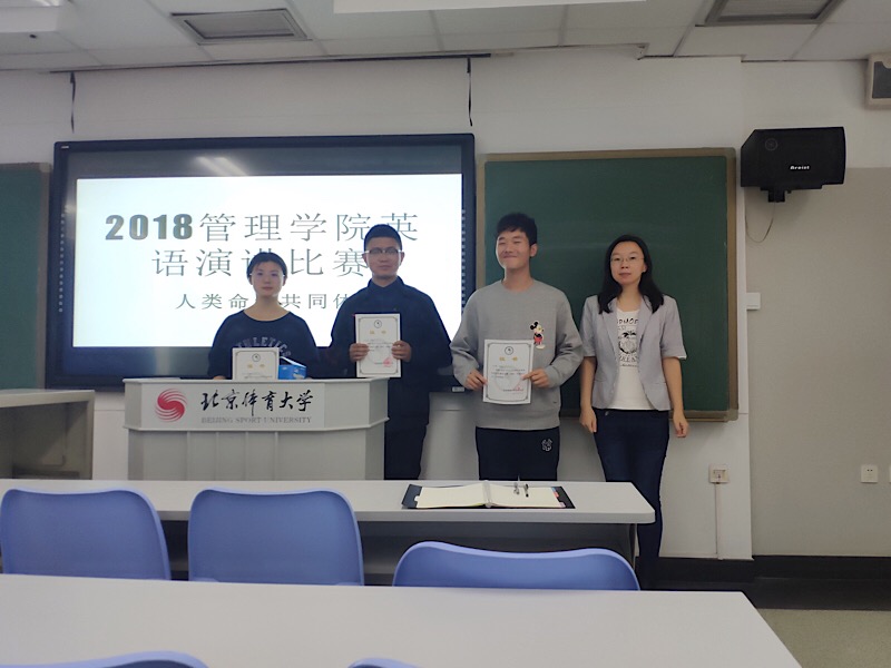 2018年10月10日十点,管理学院在教学楼301教室举办学院英语演讲比赛。出席今天英语演讲比赛的是管理学院副书记、副院长王莉老师和管理学院办公室主任高春燕老师,担任本次比赛的评委有国际体育组织学院的梁冰老师和魏惠琳老师。