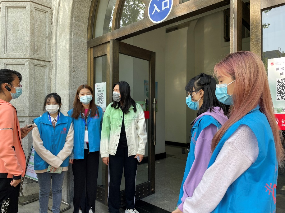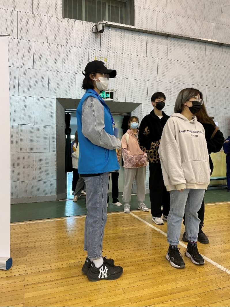 同学们以“服务所需,志愿所向”为原则,对前来进行疫苗接种的学生们进行入口引导、预检分流、接种引导、留观引导、出口引导等现场服务。