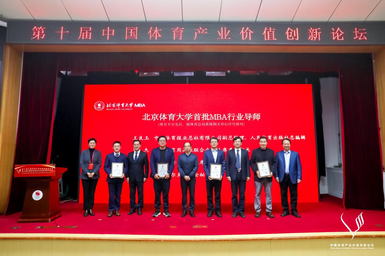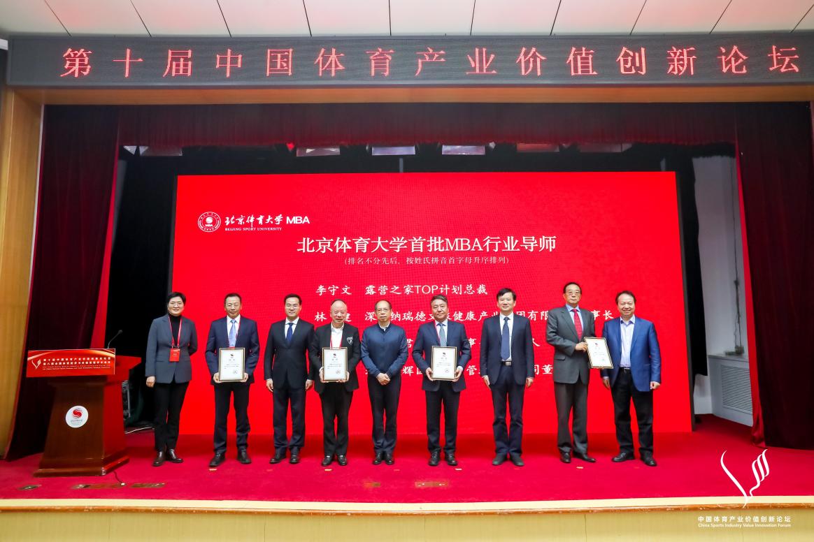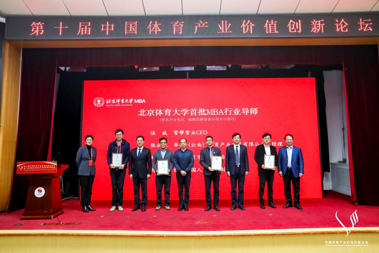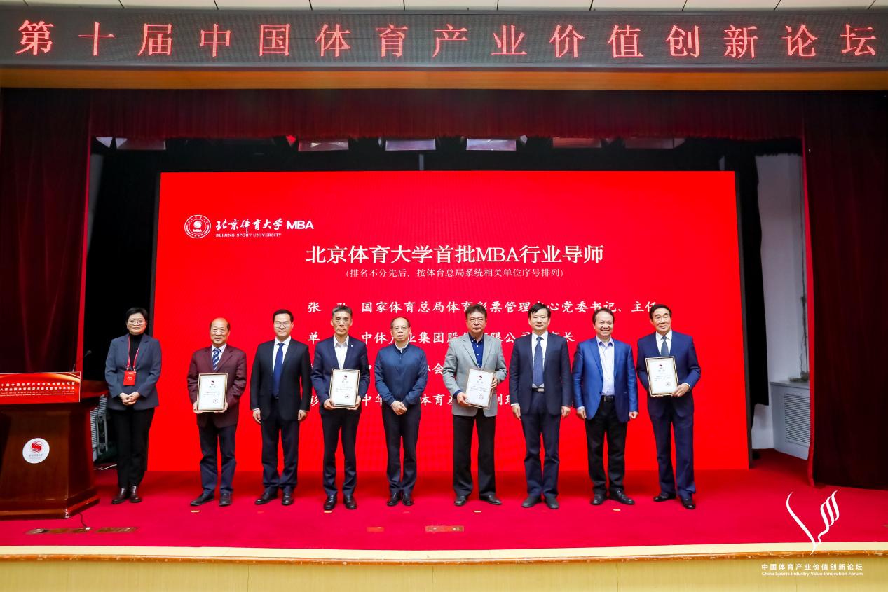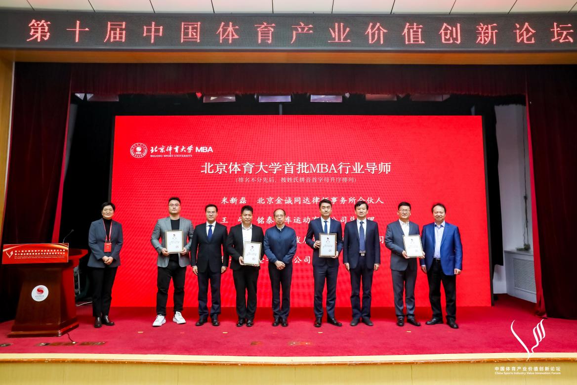 论坛期间举行了北京体育大学首批MBA行业导师聘任仪式。建设高质量体育产业MBA行业导师队伍是北京体育大学为提升实践创新型人才培养质量,促进MBA项目人才培养与产业、行业、企业、科研院所、政府部门等资源要素集聚、优势互补,将产业前沿技术、实用技能、现实问题及时转化为学生学习培养内容的重要举措。李开孟理事长、张剑校长、黄检良副理事长、周启迪副校长共同为到场的行业导师代表颁发聘书。