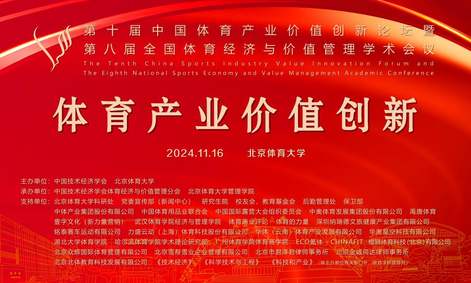 11月16日,由中国技术经济学会和北京体育大学联袂主办,中国技术经济学会体育经济与价值管理分会、北京体育大学管理学院承办的第十届中国体育产业价值创新论坛暨第八届全国体育经济与价值管理学术会议在北京体育大学成功举办。