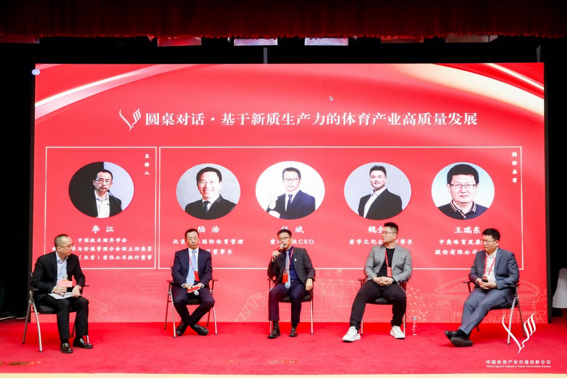 第二场主题为“基于新质生产力的体育产业高质量发展”,由体育经济与价值管理分会副主任委员、禹唐体育(北京)有限公司执行董事李江主持,北京众辉国际体育管理有限公司董事长陆浩,北京市滑雪协会副主席、雪帮雪业CEO伍斌,壹字文化公司董事长魏全民,中奥体育发展集团股份有限公司副总裁王瑞东四位嘉宾结合最前沿的实践经验展开讨论。