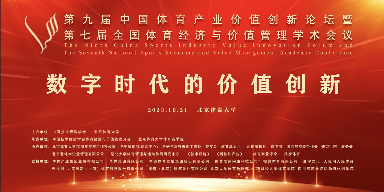 10月21日,由中国技术经济学会和北京体育大学联袂主办的第九届中国体育产业价值创新论坛暨第七届全国体育经济与价值管理学术会议在北京体育大学师统讲堂举办。论坛得到相关高校,中体产业、华体集团、中奥体育集团、露营之家、橙狮体育、壹字文化、人民网人民体育、央视网、力盛云动等业界单位,禹唐体育等体育营销类垂直媒体的鼎力支持。