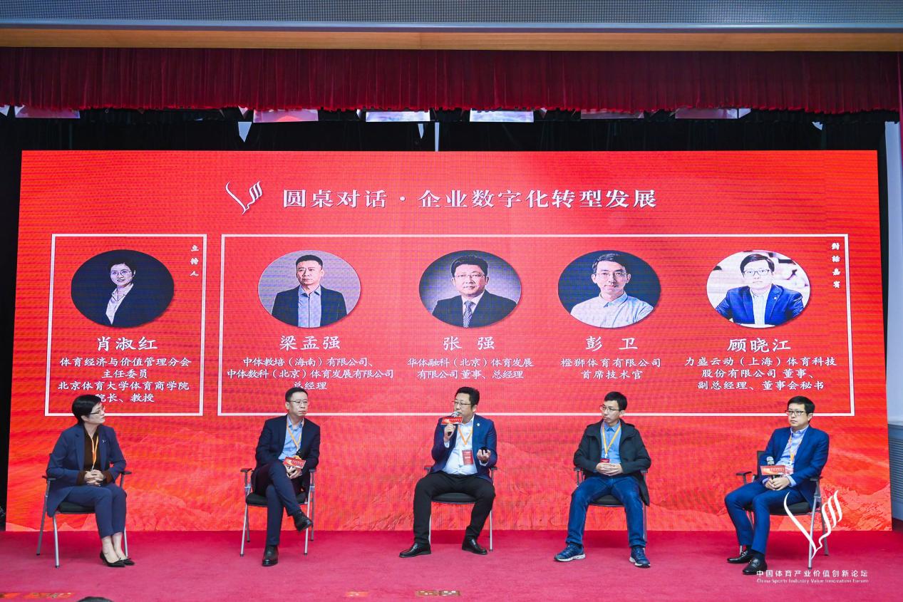 圆桌对话环节,分两场进行。首场由体育经济与价值管理分会主任委员、体育商学院院长肖淑红教授主持,中体教培(海南)有限公司、中体数科(北京)体育发展有限公司总经理梁孟强,华体融科(北京)体育发展有限公司董事、总经理张强,橙狮体育有限公司首席技术官彭卫,力盛云动(上海)体育科技股份有限公司董事、副总经理、董事会秘书顾晓江就“企业数字化转型发展”进行分享交流。四位嘉宾围绕新时代背景下体育产业数字化发展的前沿热点问题深入探讨,畅聊数字技术赋能体育产业发展的趋势,助力提升企业数字化转型,护航体育产业高质量发展。