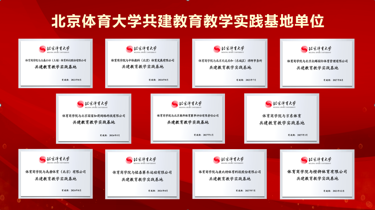 在这一个特殊的时期当中,为了共同推进高等教育改革,充分发挥企事业单位与高校相结合的优势,构建高校与企事业单位联合培养人才的机制,共同培养富有创新意识和实践能力的复合型体育人才,北京体育大学体育商学院在密切合作与互利共赢的基础上,决定与近两年来新签约的优秀企事业单位共建北京体育大学校外教育教学实践基地,并于2022年11月26日上午举办的第八届中国体育产业价值创新论坛中,通过线上的形式成功举办了“共建教育教学实践基地授牌仪式”。