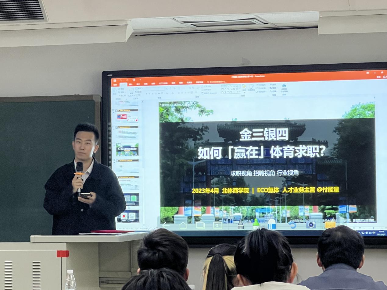 而后,付宇同为同学们讲解了“金三银四,体育求职如何减少信息不对称?”,主要介绍了2023年体育求职环境概况,帮助大家解决如何找到体育类的招聘信息,职业生涯规划与体育企业选择等就业问题。