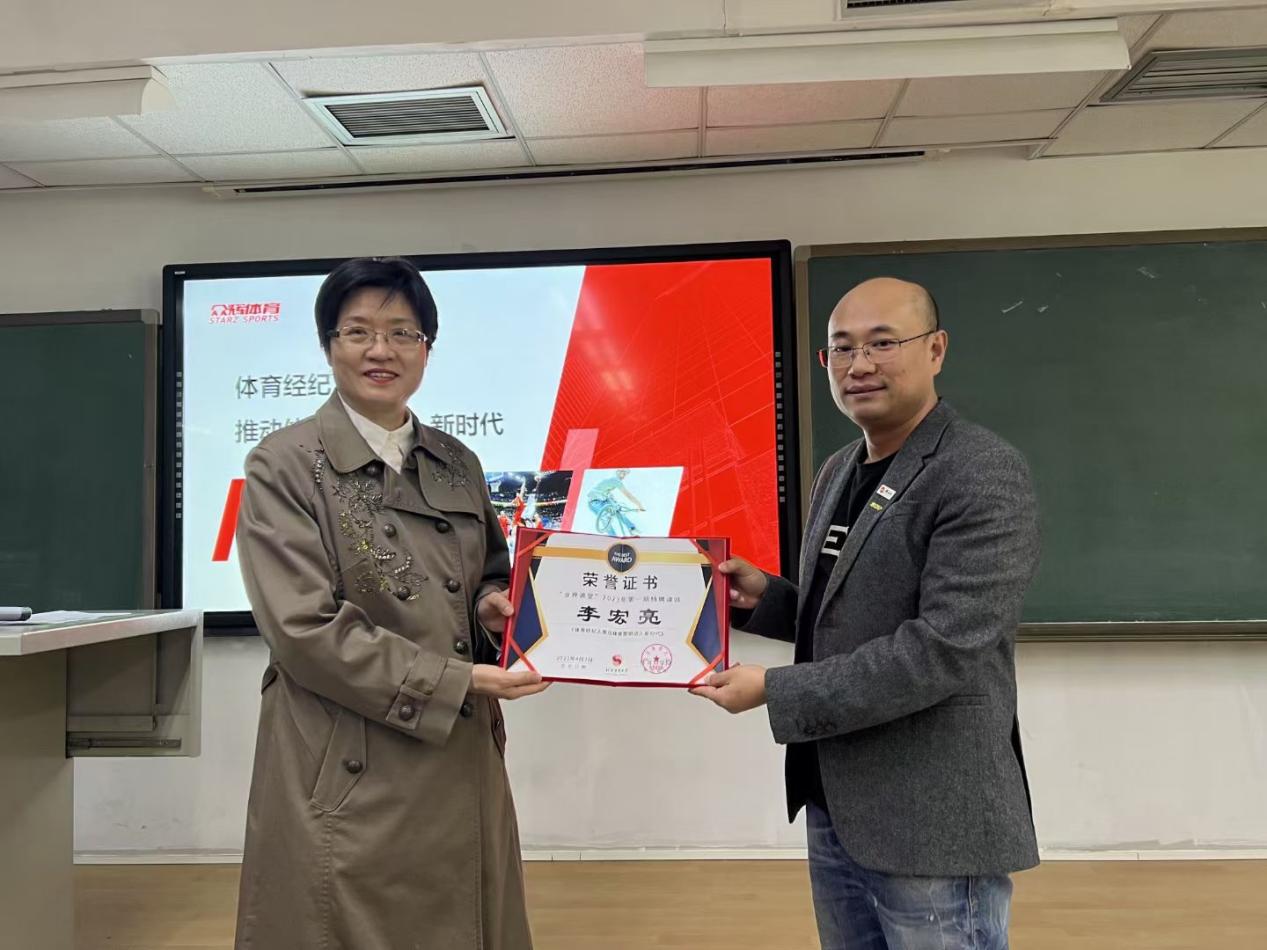 4月7日下午,体育商学院2023年《业界讲堂》第一期于教学楼313教室圆满举行。本期业界讲堂由体育商学院院长肖淑红主持,邀请了众辉体育总裁助理兼营销部总监李宏亮和ECO氪体人才业务部主管付宇同讲授,共计40名师生参加。在讲堂开始前,肖院长分别为大家介绍了到场嘉宾,进而颁发了荣誉证书。