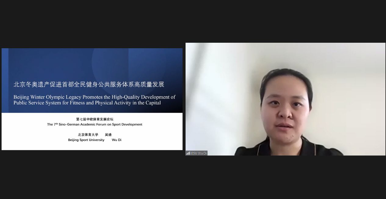 来自北京体育大学管理学院的讲师吴迪博士则以《北京冬奥遗产促进首都全民健身公共服务体系高质量发展》为题,对北京市全民健身公共服务体系建设成效、北京利用冬奥会遗产来提升全民健身场地设施供给数量和质量,提升健身公共服务递送覆盖范围和水平,加强全民健身公共服务体系供给侧改革的做法进行了深入分析。