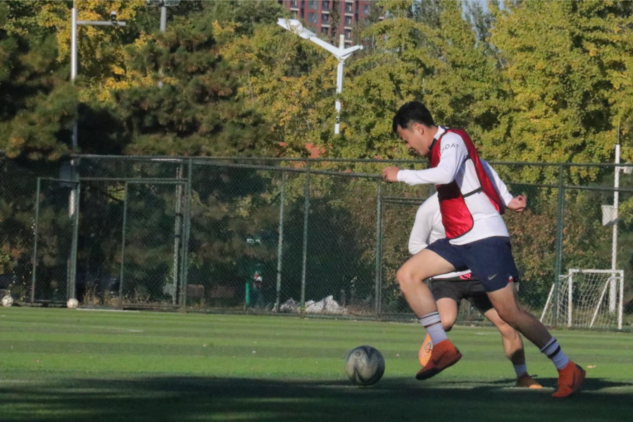 稍事休息,大家转战足球场。晚秋时节,阳光正好,风过林梢,足球场上一片生机盎然,北京体育大学体育商学院校友足球赛正式开始!