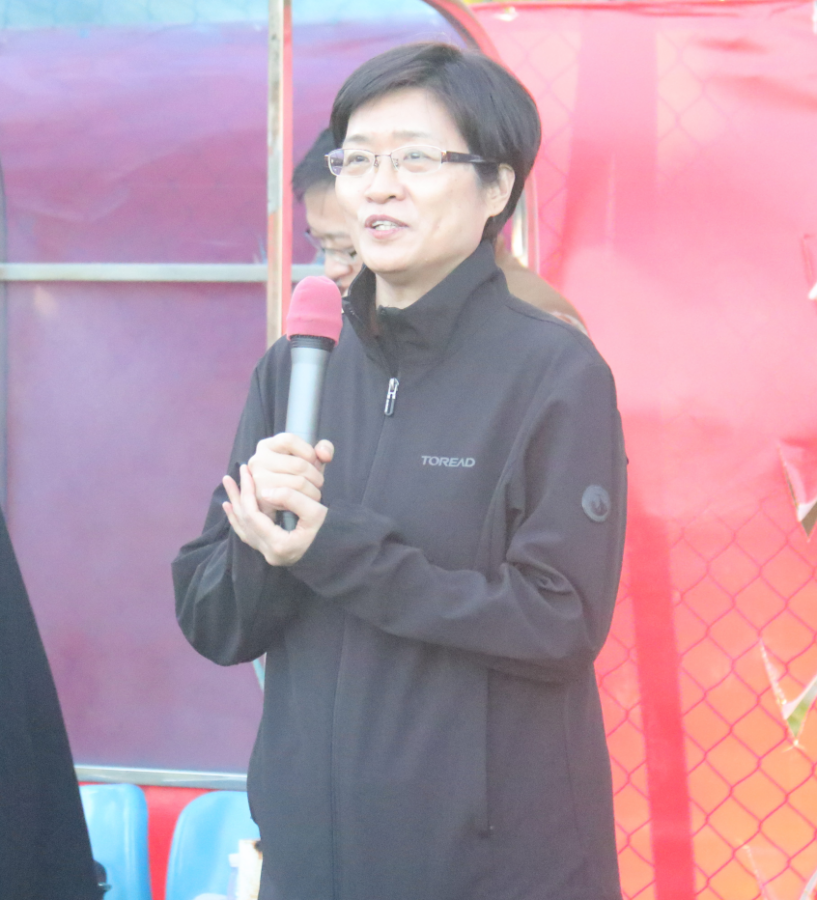 闭幕式伊始,体育商学院院长兼党总支副书记肖淑红对本次活动进行了总结致辞。首先,肖院长对校友们能够回来并参加此次“校友杯”篮足球联赛表示热烈欢迎。然后,她希望院友能够加强交流,多多支持学校、学院,为学弟学妹们创造更好的条件。同时也建议成立院友机构,形成良性互动的机制,用院友搭建的平台与创造的机会来激励学院和学生的发展。肖院长指出,体育精神,并不仅仅停留在赛场上,也应该更多地展现在全体校友、同学们的工作、学习和生活中,希望大家能够牢记习近平总书记的嘱托,多多发扬使命在肩、奋斗有我的精神,为建设体育强国多做贡献,为社会传递更多正能量。