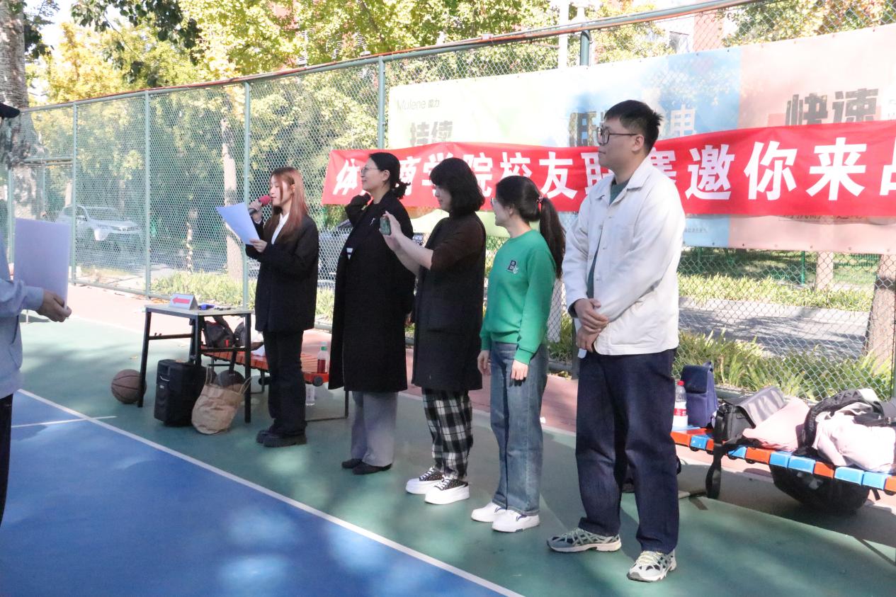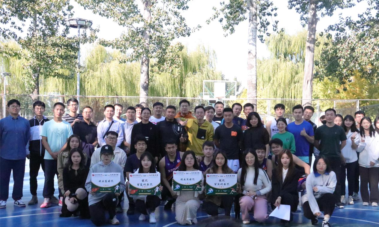 秋风习习,秋意盎然。篮球场上矫健的身姿正是校友队和院队开展激烈角逐。上篮、跳投,球员们努力拼抢,争夺篮板,有汗水,有欢笑。大家都拼尽全力为自己所在的队伍赢得分数。最后校友队以61:45胜出。