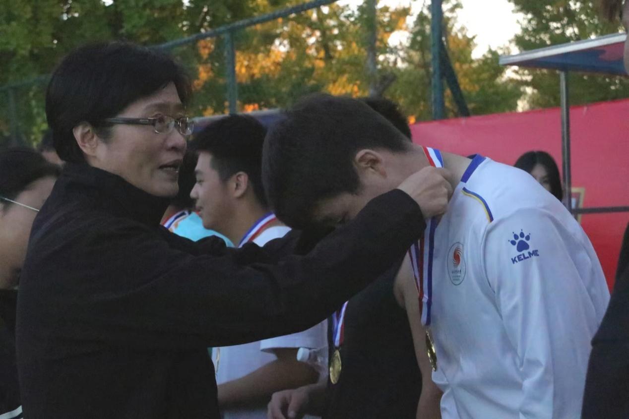 最后,肖淑红院长和戴旭书记共同为参加此次比赛的队员颁发纪念品和奖牌。在颁奖的过程中,肖院长和戴书记对每一位队员都进行了亲切的慰问与祝福,此时已是夕阳西下,落日的余晖尽洒足球场。比赛虽短,情谊绵长,在这一片和谐而美好的氛围中,本次“校友杯”篮足球联赛圆满地落下了帷幕。