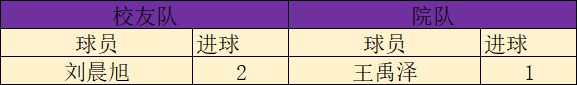 下半场易边再战。院队6号耿霄彤多次利用速度生吃对手造成威胁,其中的一脚远射可惜碰到横梁弹出。第三十四分钟,院队耐心传导,51号吴嘉乙后插上,11号努尔克心领神会用脚底向后拉球,可惜最终球被防守人员破坏。第四十一分钟,院队25号邹涛中场一脚长传,可惜被后卫用头蹭出边线。第四十六分钟,校友队8号王树岩抓住后防失误突入禁区,传给10号刘晨旭,后者一蹴而就破门得手,将比分改写成2:1。在之后的时间里,院队展开反扑,可惜进攻机会多次被校友队破坏。最终比赛结束,校友队2:1院队获得胜利。